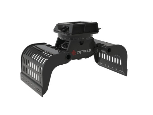 Sloop-en sorteergrijper met SB152-gatenpatroon en draaikrans. Een echte krachtpatser met een inhoud van 100 liter en een sluitkracht van 20 kN.
